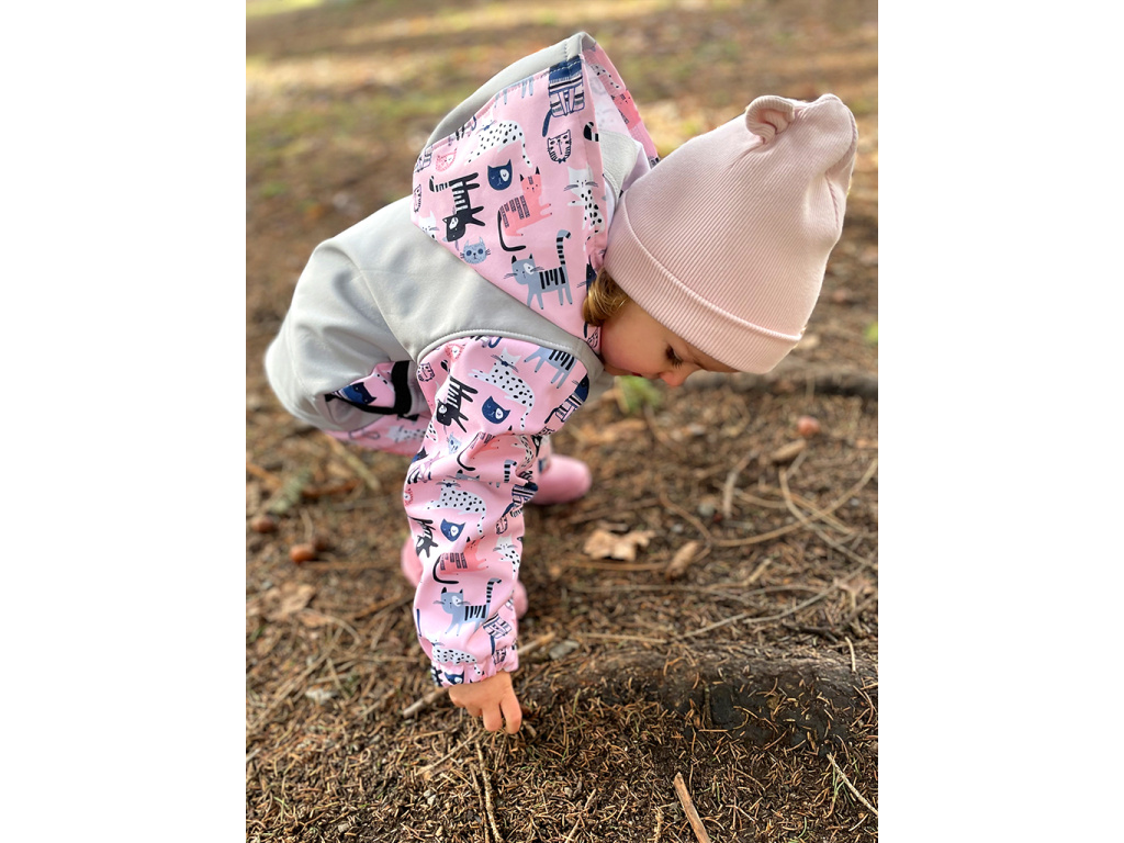 Materiál, který je ideální k venkovnímu dobrodružství. Nepromokne, neprofoukne, a proto je mezi maminkami a jejich dětmi tolik oblíbený. Skládá se ze tří vrstev - vrchní vrstvy, prodyšné membrány a vnitřní síťky, která je k látce přilepená. Vodní sloupec softshellu je 18 000 mm, prodyšnost 12 000 g/m2/24 hod. Tyto parametry jsou ideální na běžné volnočasové aktivity, jako je výlet do přírody, odpolední procházka nebo hraní na hřišti. Kalhoty jsou ušité z pružného softshellu.