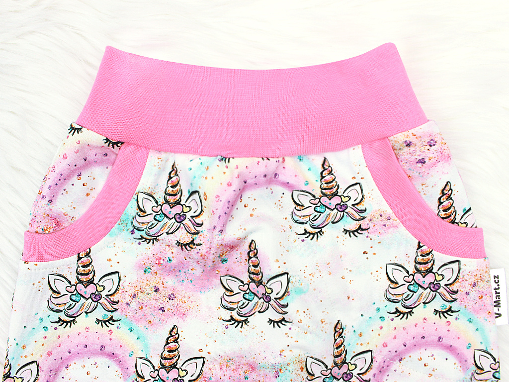 Dívčí sukně Jednorožčí očička (s gumou v pase) RŮŽE