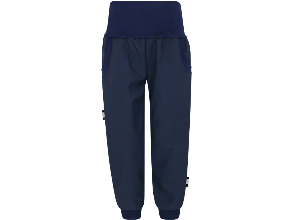 SLIM Tmavě modré softshellové kalhoty - modrý pas (s fleecem) TMAVĚ MODRÉ