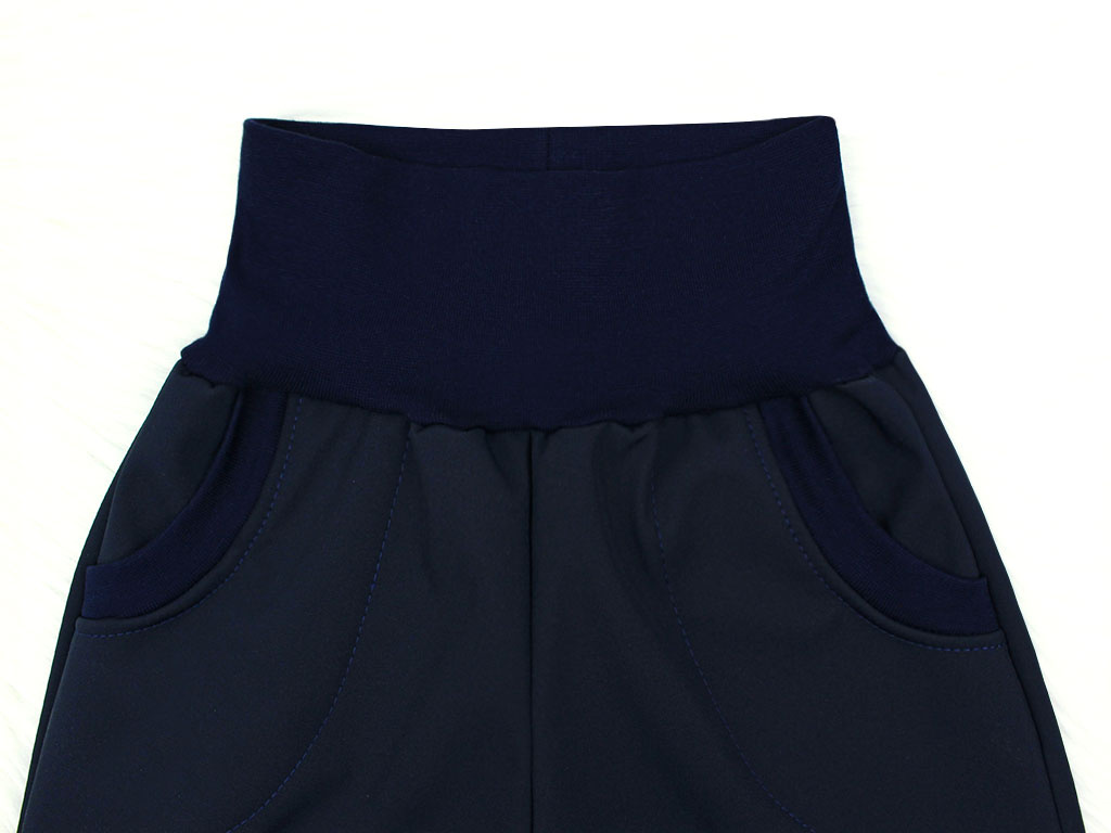 SLIM Tmavě modré softshellové kalhoty - modrý pas (s fleecem) TMAVĚ MODRÉ