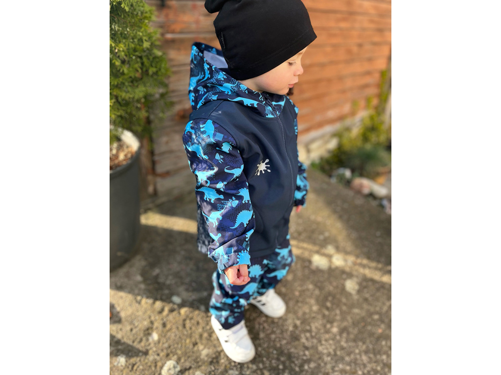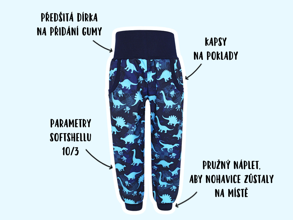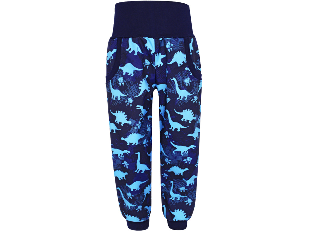 Softshellové kalhoty Dinosauři - modří (s fleecem) DINOSAUŘI