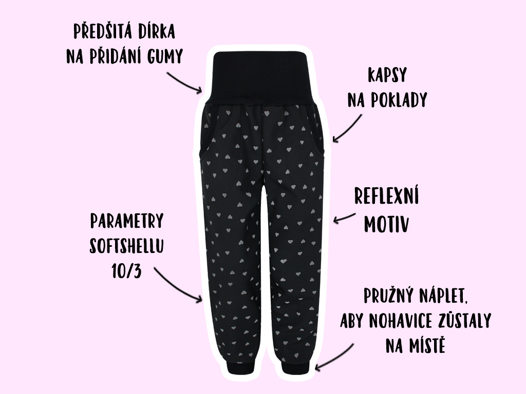Softshellové kalhoty Reflexní srdíčka (s fleecem) REFLEXNÍ SRDÍČKA