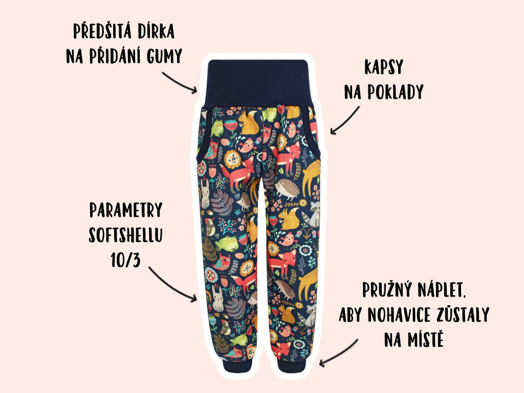 Softshellové kalhoty Zvířátka (s fleecem) ZVÍŘÁTKA