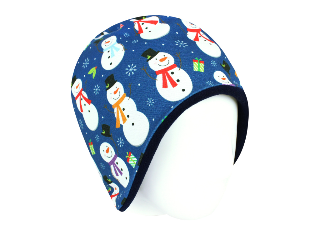 Zateplená čepice Sněhuláci na tmavě modré SNĚHULÁCI