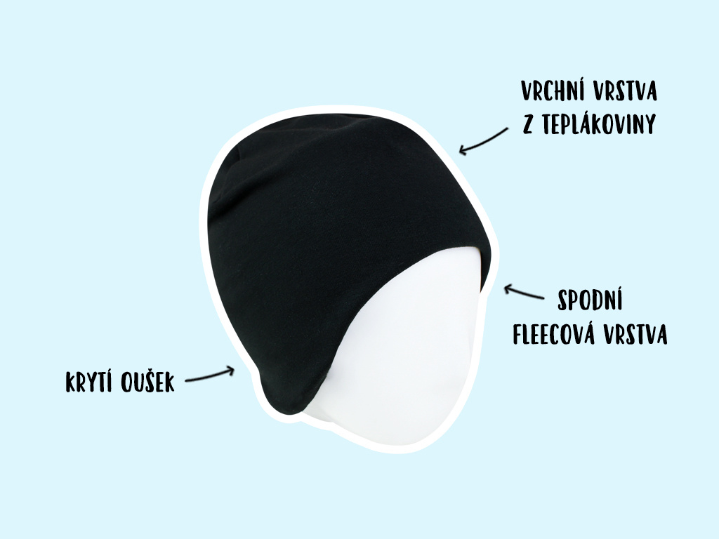 Materiál: 100% polyester (fleecová vrstva), 95% bavlna, 5% elastan (teplákovina)